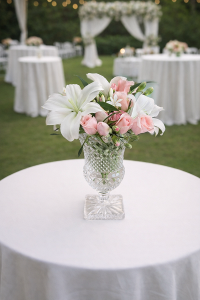 Chaque composition florale est réalisée sur mesure, en fonction du nombre d’espaces à décorer, du volume floral souhaité et des contraintes du lieu. Cette prestation est proposée sur devis et peut être intégrée à une scénographie florale complète ou commandée ponctuellement pour certains espaces.